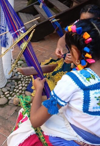 En estos espacios, los menores de la comunidad pueden aprender el arte del tallado de madera y la creación de piezas textiles con telar de cintura.