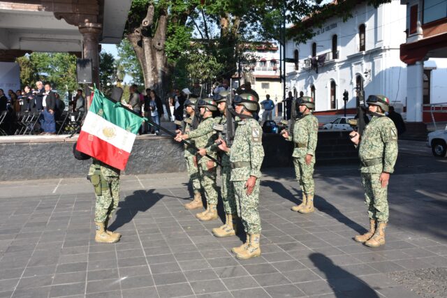 Referida ceremonia fue presidida por la C. Hilda Maldonado Medina, Síndica Municipal en representación de la Lic. Grecia Itzel Quiroz García, Presidenta Municipal de Uruapan y por el Coronel del Arma Blindada de Estado Mayor Carlos Iván Peña Guerra, Comandante del 2/o. Regimiento Mecanizado, así como de representantes de la Guardia Nacional, Policía Municipal y diversas autoridades locales, así como la participación de docentes y alumnos de distintas instituciones educativas.