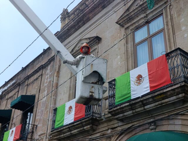 Morelia, Michoacán; 28 de agosto de 2025.- El Gobierno de Morelia, que encabeza el Presidente Municipal, Alfonso Martínez Alcázar, a través de la Secretaría de Servicios Públicos dirigida por el secretario Netzahualcóyotl Vázquez Vargas, informó que se han instalado alrededor de 250 adornos patrios en diferentes puntos estratégicos de la capital, los cuales permanecerán iluminados durante todo septiembre.