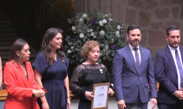 La madre de la joven maestra Jessica González Villaseñor, quien murió en el año 2020 víctima de feminicidio, fue la recipiendaria de la Presea Amalia Solórzano.