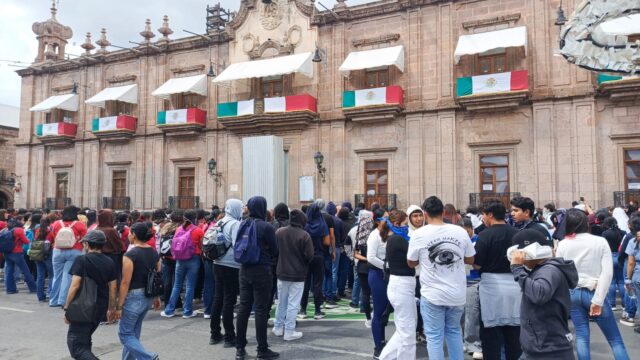 En Morelia, estudiantes integrantes de la Organización de Escuelas Normales (ONOEM), marcharon por las calles de Morelia, llegando a Palacio de Gobierno, en el primer cuadro de la ciudad, para sumarse a la lucha y exigencia de la aparición con vida de sus compañeros.