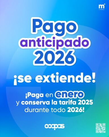 Morelia, Michoacán, 14 de enero de 2026.- El Organismo Operador de Agua Potable, Alcantarillado y Saneamiento de Morelia (Ooapas) recuerda a las y los usuarios que continúa vigente el programa de Pago Anticipado, el cual permite cubrir el servicio de agua potable correspondiente al año 2026 con la tarifa 2025, representando un ahorro directo para la economía familiar.